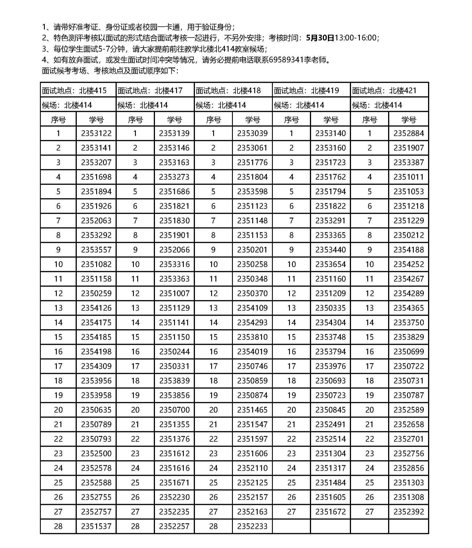 偷拍视频 2023级主修专业确认跨类面试学生分组安排表