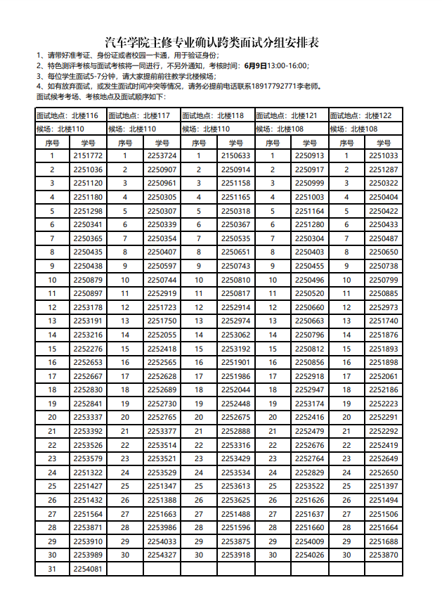 偷拍视频 主修专业确认跨类面试学生分组安排表