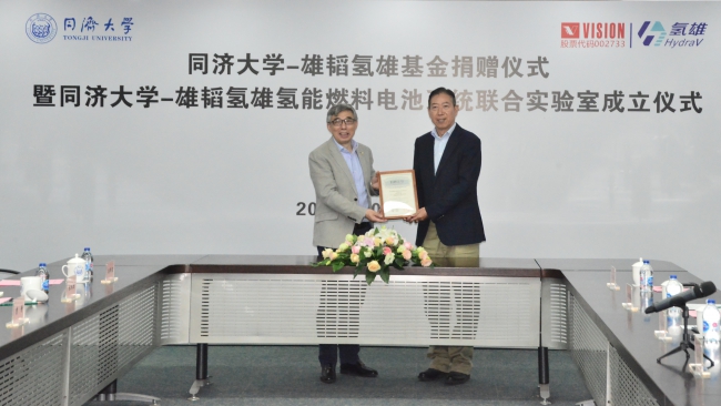 雄韬氢雄基金捐赠协议》和《共建氢能燃料电池系统联合实验室协议》。捐赠基金将为汽车、机械、材料、电信等相关学科提供奖学金、奖教金。此次协议的签订是我校加强校企合作、拓展育人平台的重要举措,也将进一步推动校企双方更好的服务国家战略,培养优秀人才。