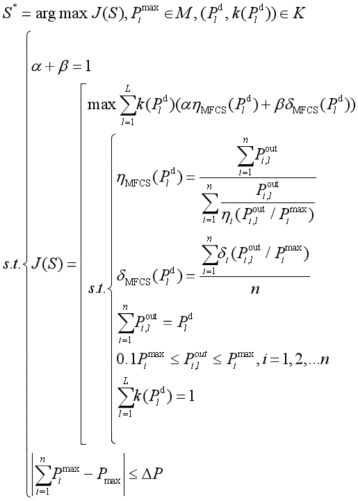 周苏教授在文献[2]中提出了一种以效率和寿命为综合优化指标,以各电堆功率输出范围、各电堆效率和寿命特性等为约束边界的MFCS电堆优化分配的数学模型(图1)。利用功率分布直方图,将C-WTVC工况转化为数学上具有统计意义的应用场景。在特定的应用场景中,通过求解MFCS电堆优化分配数学模型,可以得到该场景下最优的电堆分配方案(图2)。