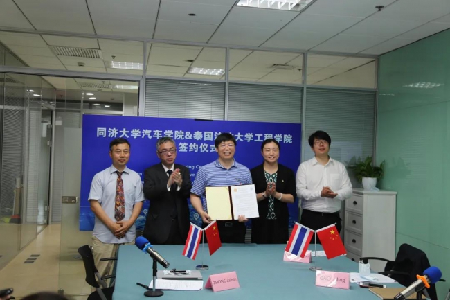 院长张立军、泰国法政大学工程学院院长提·佳西里彭衮、正大集团汽车及工业事业资深顾问兼法政大学工程学院专家顾问许汉松、上汽集团总裁助理余德、上汽国际副总经理袁映琛等出席了此次网络签约仪式。