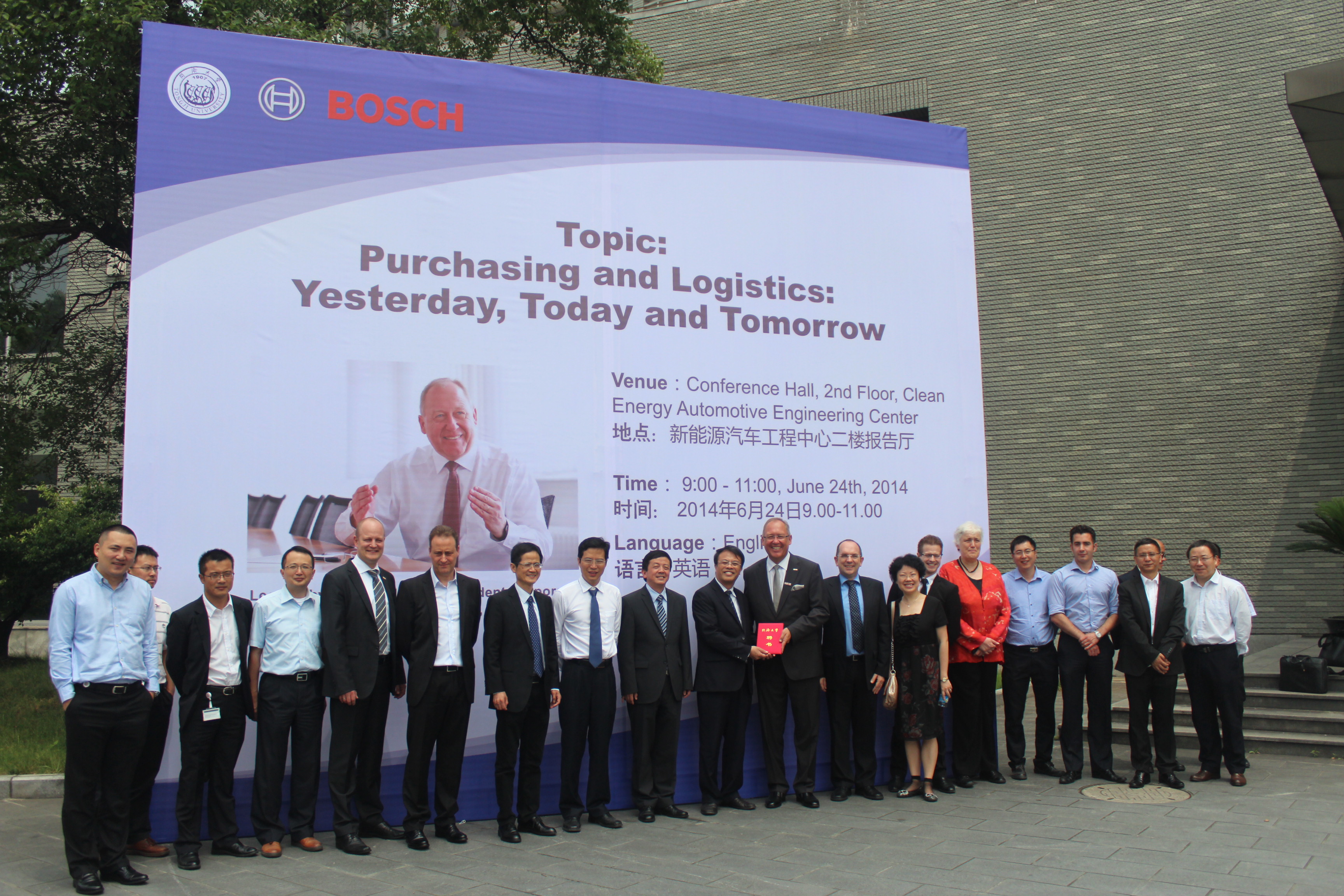 教授在新能源汽车工程中心大楼门前进行合影,为此次博世公司同济校园行画下了圆满的句号。