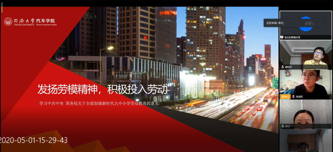 本科2018级3班召开了“学习劳模精神,积极投入劳动”的主题班会,会上班主任李红老师带领同学们学习了党中央国务院关于劳动育人的文件精神,分享了劳动模范的典型事例,号召同学们向劳模学习,积极投入劳动及各类社会实践活动,发扬劳模精神。同学们积极响应,分享了自己在疫情防控期间的劳动体会,有的加入疫情防控志愿者队伍,有的投入到家务劳动中,有的主动承担农活。同学们能充分认识到劳动的重要价值,也了解了在不同岗位中兢兢业业工作的现实意义,大家表示在未来的学习生活中继续积极投入劳动,向劳模学习!