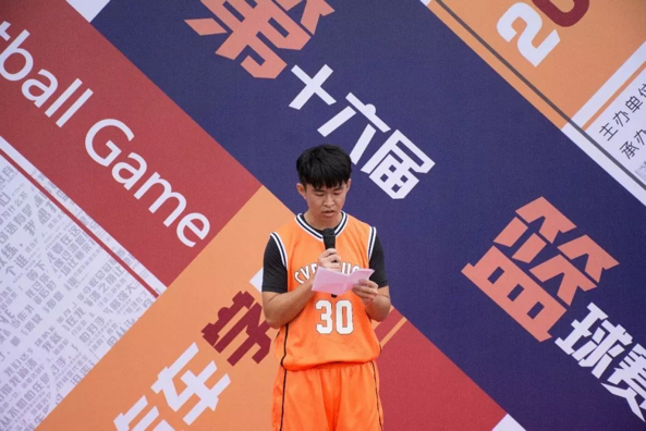 随后,球员代表李俊成同学代表球员们进行了宣誓,承诺在比赛中严格遵守赛事安排,发扬“友谊、团结、公平竞争”的体育精神。