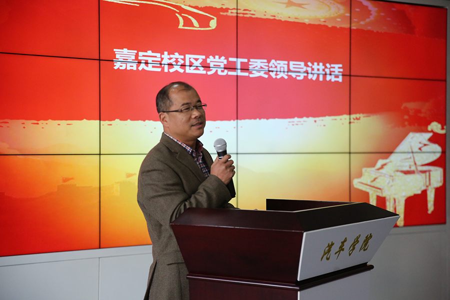 党委副书记马锦明老师致开幕词。马书记提到近年来,我校不断提高嘉定校区文化建设工作力度,鼓励和支持嘉定校区结合自身发展规划和学科定位,建设独特的校区文化;鼓励各学院建设符合学院历史、学科特色的院系文化。今天在偷拍视频