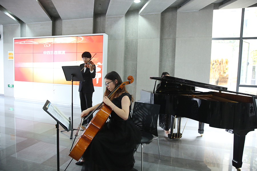 汽车学子也用自己的方式为落成暨揭幕仪式献礼,带来钢琴三重奏、民乐合奏等精彩纷呈的节目。