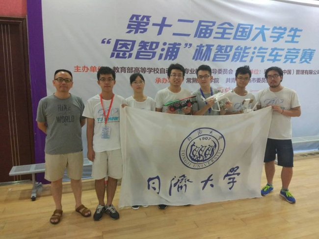 李秋键、杜博宇、陈贤钦、杨震宇、刘颖组成的“TUSmart队”在全国总决赛四旋翼导航组的激烈比赛中竭尽全力发挥出色,并最终获取创意奖。由电子与信息工程学院的同学组成的代表队也成功获得双车对抗组和光电四轮组的全国二等奖。