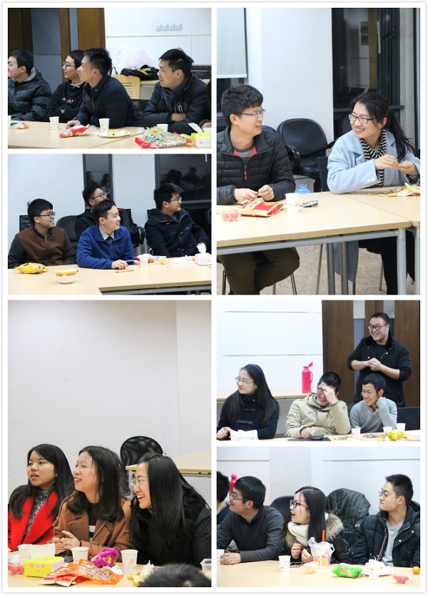 首先,张光辉从班级平均学习成绩、获得奖学金情况、班级凝聚力、所获荣誉等方面对过去一年的班级工作进行了总结,也对党支部对班级工作的大力支持、热心奉献表示感谢;随后,每位同学围绕开题情况、科研难题、收获总结及展望目标进行了PPT展示与分享。通过这个环节,同学对不同研究方向的研究内容有所了解,互相取长补短,。大家对自己的2016年进行了总结,同时也对2017年的新生活充满着期待与憧憬。