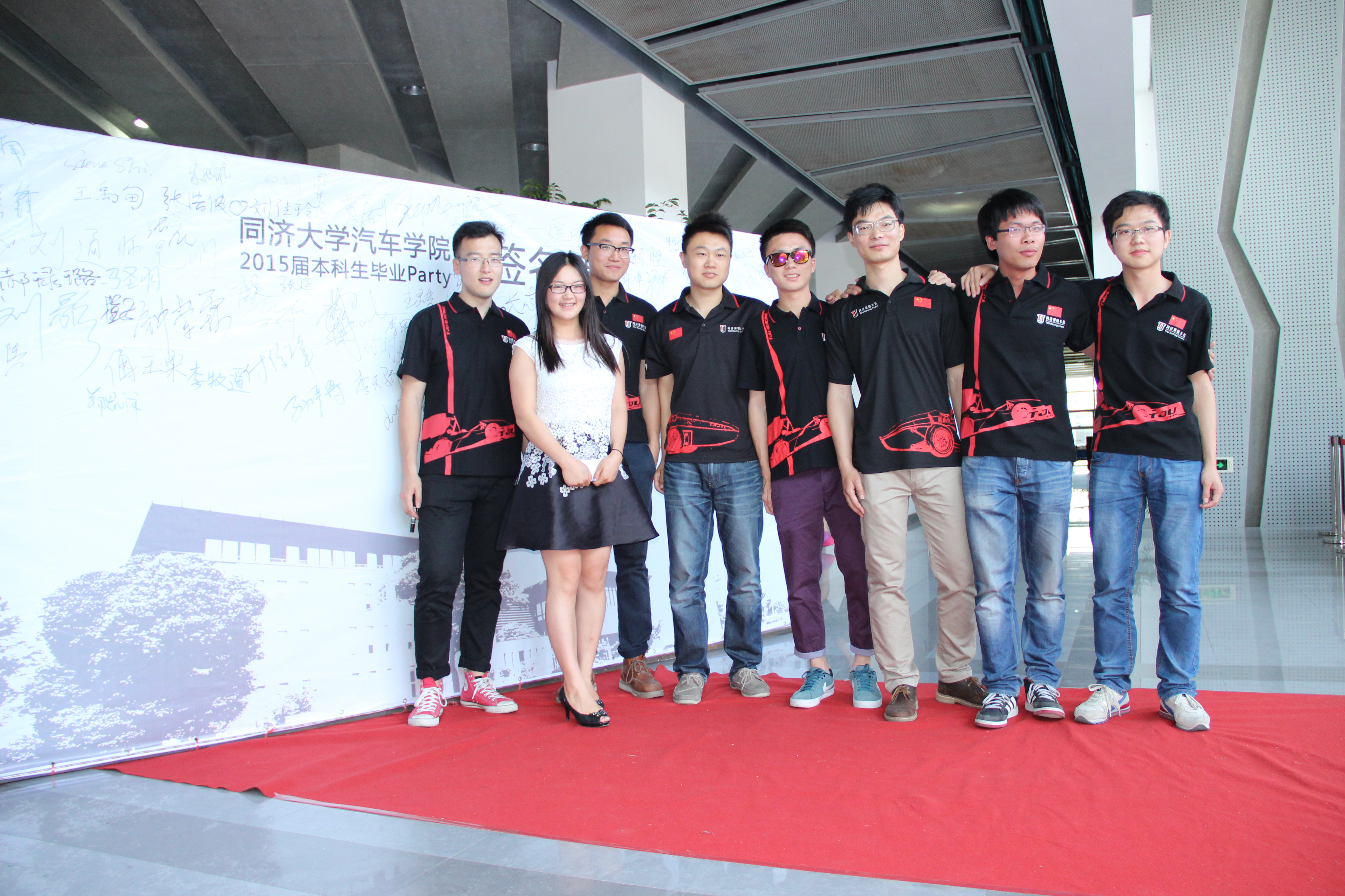 22日,同学们身着学士服陆续到来,偷拍视频 一楼大厅熙熙攘攘,济济一堂。随后,同学们身着各班的五彩毕业纪念衫与学士服和老师们共同拍摄了班级毕业合影照和年级毕业合影照,共同珍藏这美好的一刻;之后,带着对母校的深深眷恋和感恩之情,各班毕业生代表在学院门前种下一颗樱花树;在一片加油声中,激烈的拔河比赛在六个毕业班中展开。随着音乐响起,毕业主题party开始,同学们纷纷结伴走上红毯,在毕业签名墙上留下自己的名字。大家脸上洋溢着毕业的喜悦和即将分别的不舍,纷纷相互合影,畅谈毕业感想。在热闹的party之后,五彩汽车人分别来到各自的教室,开展了最后一次主题班会,共述同窗回忆;伴着斜阳的余晖,同学们来到大家无数次挥洒汗水的运动场,举行了最后一场篮球比赛。在教室里,在篮球场上,老师和同学们重温五年来的校园生活,共同珍藏大学里的青春记忆。