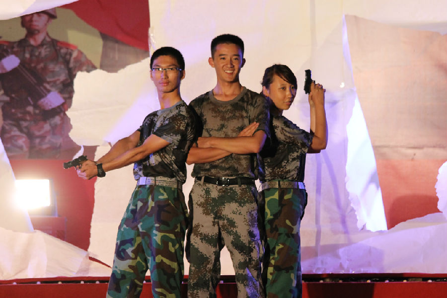 的男生参加,他们标准帅气的持枪动作,敏捷机警的掩护动作,还引来了场边女生的阵阵尖叫。