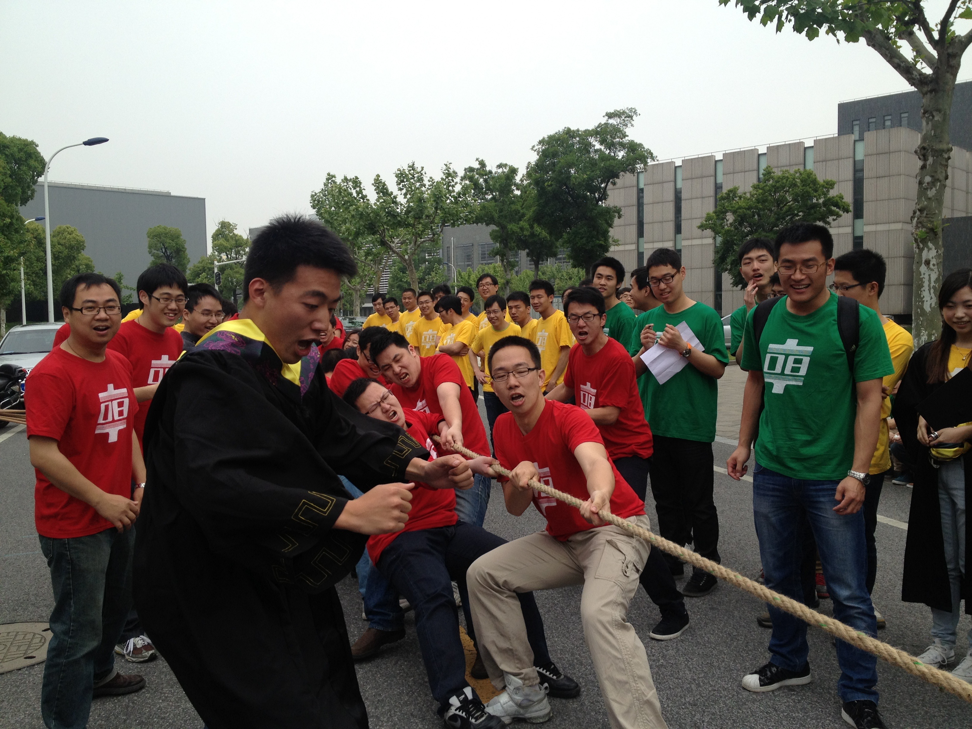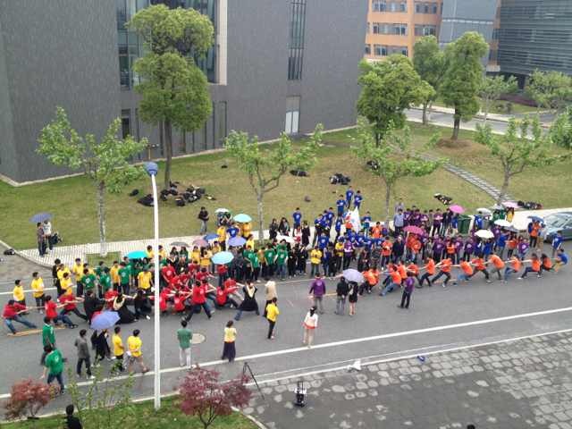 接下来是精彩激烈的“凝聚众人心力,弘扬拼搏精神”拔河比赛,三轮比拼精彩绝伦,悬念迭起,最终三班勇夺冠军,赢得旌旗。