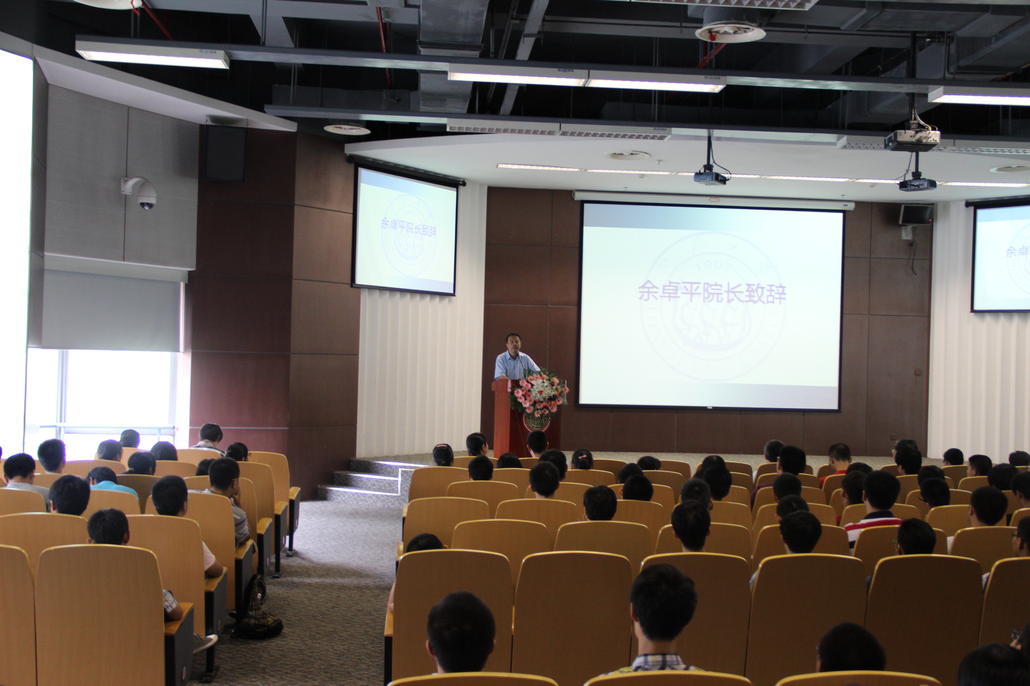 党总支陈翌书记、机械学院院长杨志刚教授及其他学院领导、各个学科方向老师代表、学工办、教务科老师参加了本次开学典礼。典礼上,余卓平院长做了重要讲话,热情洋溢地给新生们讲述了百年同济的光辉历程,也详细介绍了偷拍视频