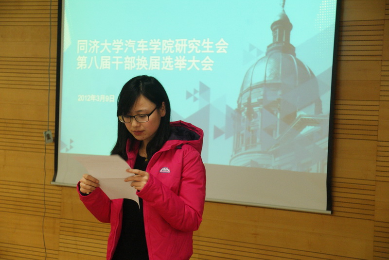 团委书记郑晶晶老师、研究生会第七届干部成员、2010级硕士研究生各支部书记、2011级硕士研究生代表等60余人出席了大会。团委书记郑晶晶老师监督了换届选举全过程并讲话,大会由研究生会主席许翔主持。