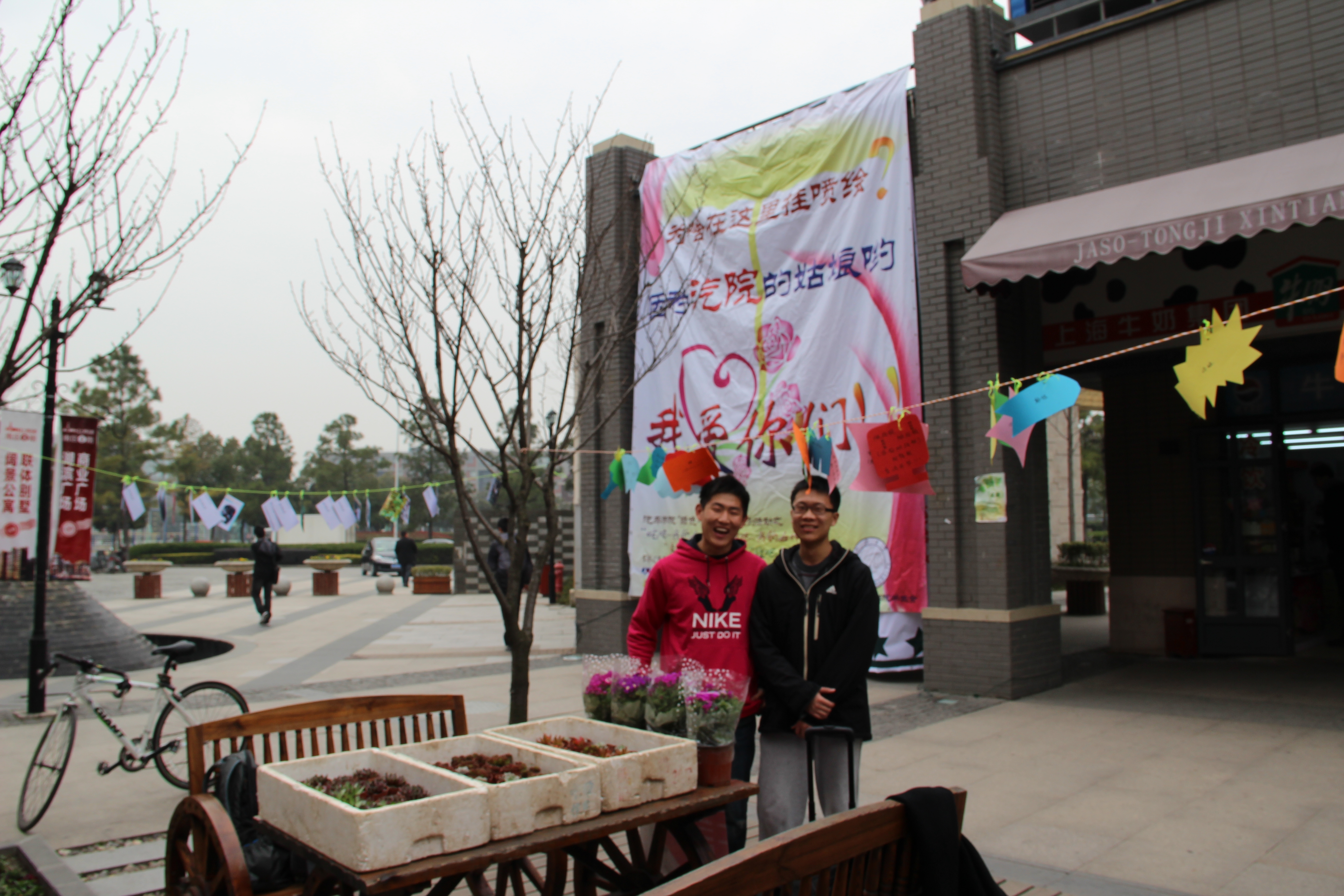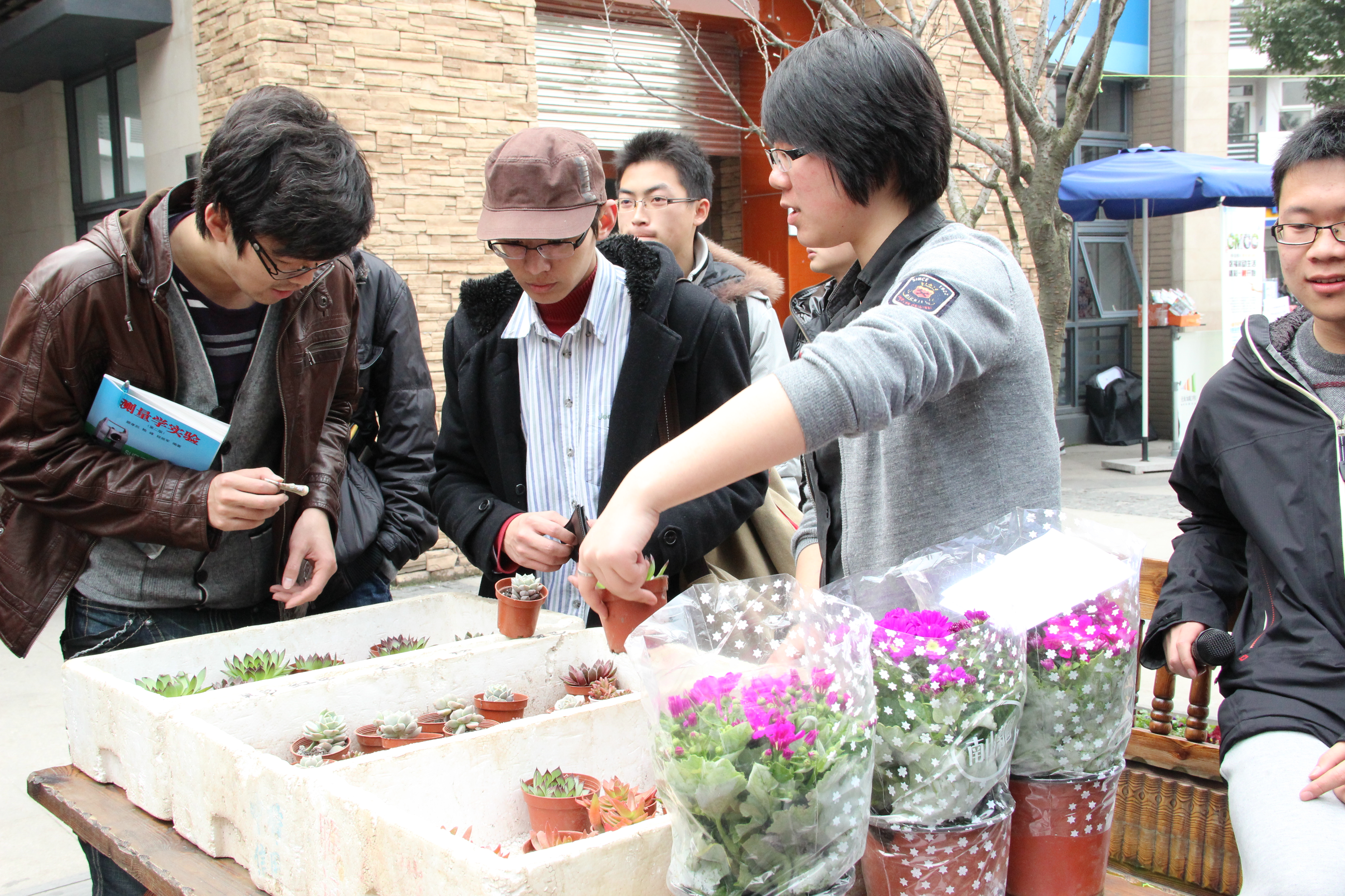 学生会在学校新天地开展了“绿色传递、爱心互动”活动,此次活动旨在倡导传递绿意,奉献爱心。学生购买了各式小盆栽在新天地摆摊义卖,既在春天里传播绿意,让更多的学生感受春的气息;又将所卖款项用于捐助甘肃定西的贫困儿童,为他们购置些体育设备,丰富他们的课余活动,奉献自己的一份爱心。