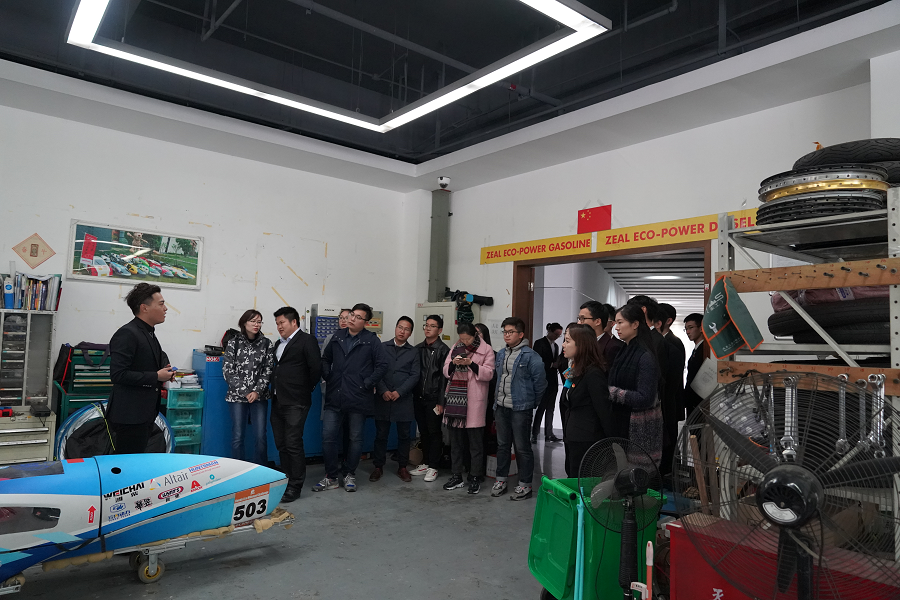 在曹卢老师的带领下,老师们还参观了“咖驿站”创新创业项目及造型小班优秀设计作品及大学生科技创新实践基地。同济电车队队员刘孟萱为来访的老师们讲解了学生车队往届赛季所设计制造的赛车。参观活动中,老师们对于学生们设计的各式各样汽车赞不绝口,纷纷拍照留念。