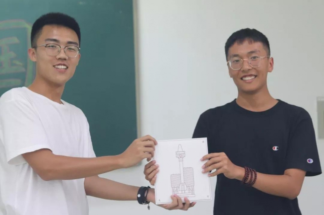 这首诗歌与众不同,因为这是同学们的原创诗歌,由薛威翼与叶宏宇两位同学合作制作出演,两位同学将自己的爱国热忱具象化于纸页上,赤子之心溢于言表,感染了在场的每一位同学。