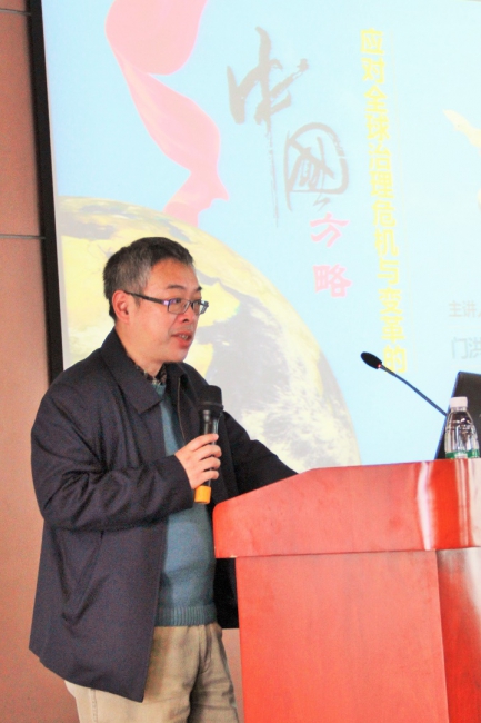 报告会上,门洪华老师从十九大报告引入走进新时代的中国与世界,讲述了中国新时代的内涵、新特征、战略部署和中国对世界的贡献;随后门老师从历史与理论的角度分析了当前全球治理危机及其战略应对,提出中国参与全球治理的战略思想与顶层设计,指出新型国际关系是中国推动全球治理变革的重要标签;最后,门老师指出,推动全球治理转型发展是中国成长成为世界大国的必由之路,是中国全面崛起的重要国际依托,中国正在围绕形成符合世界潮流、国家战略利益的“中国方案”、加强国家治理体系建设、夯实国内基础、确定中国全球战略定位、提升全球治理能力、稳步推进东亚经济治理和安全治理,抓住重点,在中国熟悉、有优势的领域推动全球治理转型发展。