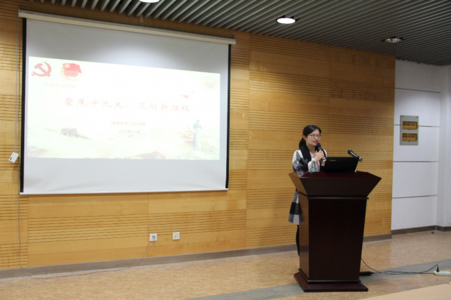 学习贯彻党的十九大精神宣讲团成员陈翌老师带领全院学生入党申请人、团支部骨干全面学习新党章和十九大精神,旨在通过党团一体开展学习教育,推动党团组织工作的规范化并进一步做好入党启蒙教育和理想信念教育。院党委副书记邓俊老师、学工办主任葛畅老师及学院入党申请人、团支部骨干约80人出席了党课,党课由葛畅老师主持。