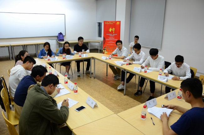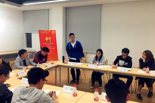 (图注)本科二支部对战16级专硕二支部,辩题为“对于韩国部署萨德系统,中方是否应该采取强硬制裁措施”,双方选手结合国际实情,深刻分析中国的处境,严格缜密地推导,捍卫己方的观点。最终本科二支部胜出。