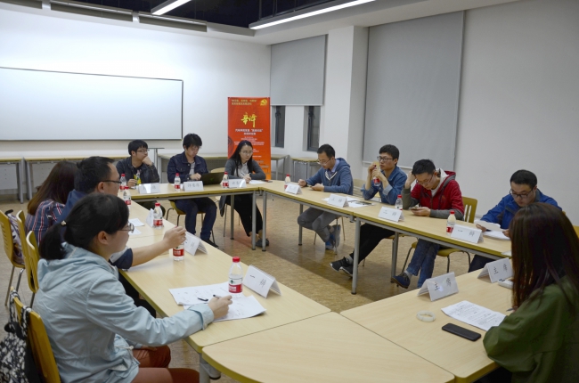(图注)16级学硕一支部对战16级专硕一支部,辩题为“师才和师德哪个更重要”,在整场比赛中,各方选手都据理力争,现场气氛十分活跃,场面激烈,精彩不断。经过激烈的角逐,最终,学硕一支部成功进入复赛。