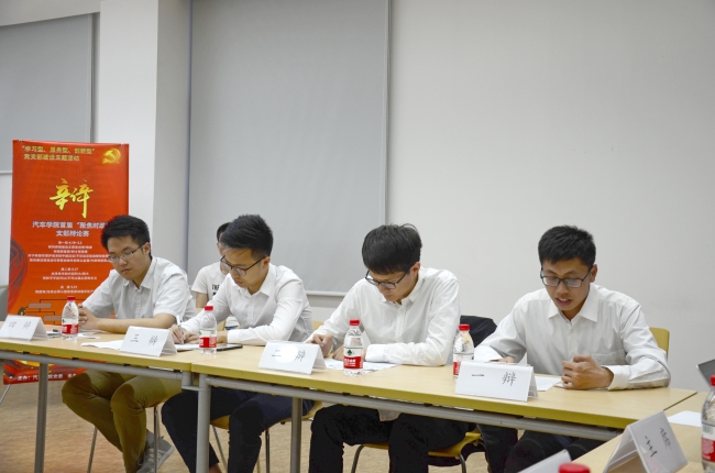 (图注)15级学硕支部对战本科支部一队,辩题为“师德师风建设需要自律还是他律”,比赛过程中双方选手引经据典,各抒己见,严谨地表明各方的立场,展现了出色的团队配合。最终,本科一支部获胜。