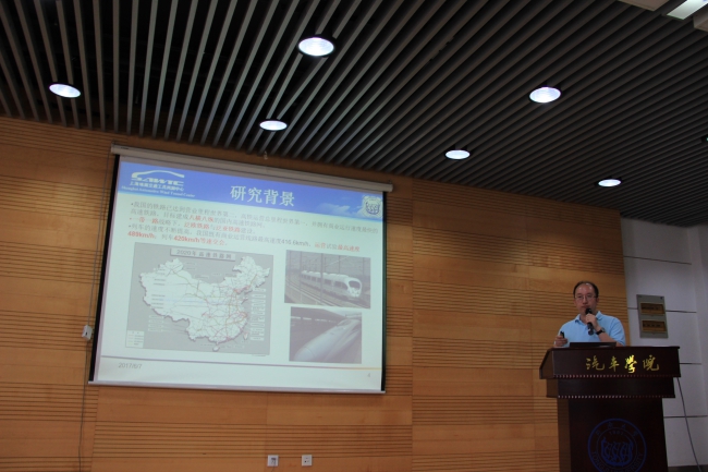 陈羽的演讲主题是《高速列车气动噪声源特性及降噪技术研究》,他充分细致地调研了高速列车气动噪声问题的现状,基于数值计算方法与气动声学风洞试验方法,对高速列车气动噪声的生源特性进行了研究,并对研究结果进行了详尽的展现。同时陈羽博士还向在场观众提出了丰富阅读范围的建议,在研读科学论文的同时,可以在科学史、科学哲学等方面有所涉猎。赵老师充分肯定了陈羽博士的细致研究成果,并就列车建模过程中的车厢节数及由轨道振动引起的声场振动进行了认真探讨。常老师就相关国家标准的现状细节问题同陈博士进行了深入交流。