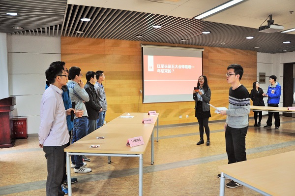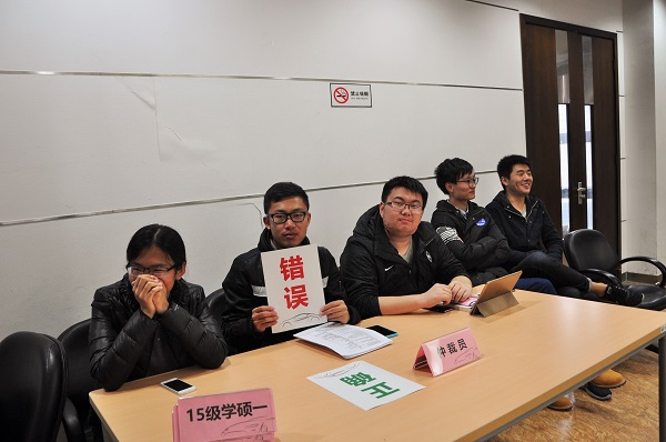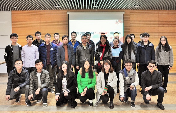 随后,史成宇老师致辞宣布第七届“一站到底”知识竞赛正式开始。18个支部经过抽签分成三组,每组分别决出两组获胜队进入决赛。竞赛题目涉及党史党章、重要讲话、时政要闻和校史院史等方面,在场的党员同志们在正能量的学习氛围中巩固和增长了知识,进一步丰富了知识储备,提高了政治素养。比赛过程中,参赛同学公平竞赛、认真答题;比赛主题严肃,但是现场气氛活跃。各支队伍都表现出色,对于“两个一百年”的奋斗目标、“四个全面”战略布局、党的思想路线等问题都回答得十分完整,可见各支部在“两学一做”学习教育中对相关知识都进行了认真学习。