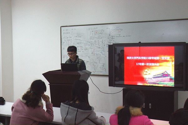 2017年1月4日,2015级专硕第一党支部在宁远馆B207开展了2017年第一次支部会议,此次活动开展了“长征”主题党员读书角交流会,重温80年前长征峥嵘岁月,展开2017年新年团队建设活动,同时讨论了两名同学发展入党问题,本次会议由吴承喜主持。