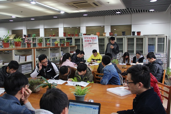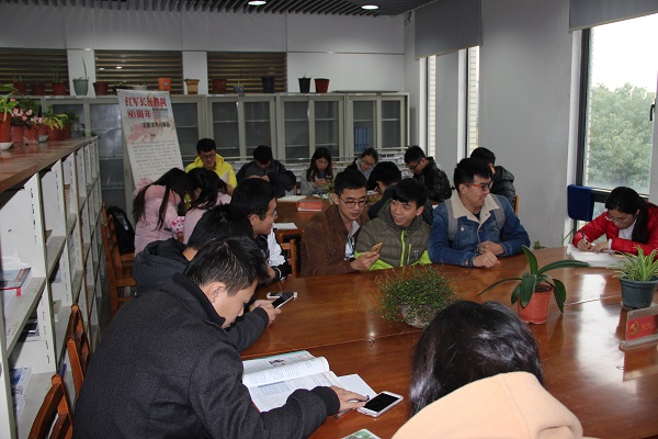 的传统活动,在这里,党员们通过读书汲取知识,了解国内外时事政治,提升党性修养和觉悟,是一项颇有意义的活动。通过认真地阅读相关书籍,各位党员们都对长征精神有了一些新的体会,并踊跃与大家分享自己关于长征精神的感悟。姜楠同志谈到“四渡赤水”这一长征中的伟大战役对研究生党员的启示,在平时的生活和学习中,要讲究策略,才能获得成功;沈丹丹同志谈到了有了革命先辈们长征之路的艰辛,才有了我们今日的和平生活,放眼世界,战争和动乱并未停息,我们社会环境和谐安宁是如此幸运,应当心存感恩。“我们没有在和平的年代,而是在和平的国家”,她如是说。