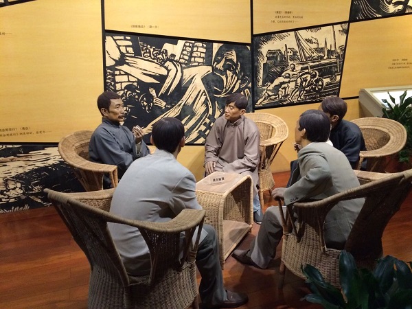 图二 鲁迅先生在为青年文艺工作者讲解新文化的方向(蜡像与版画)