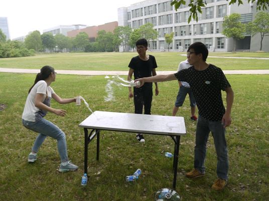 上午八点半,大家准时来到活动地点,党支部书记石俊锋首先向大家讲解了活动的主要安排和规则,并组织大家按自己的意愿快速组队,并制定出属于自己队的队长、队名和口号。活动的第一个环节是为了迎接即将到来的”六一儿童节“而准备的一个经典怀旧活动—丢手绢,虽然大家已经不过儿童节很多年了,但是玩起儿时的游戏来还是兴致勃勃,你追我赶,儿时的场景放佛又回到了眼前,活动中欢声笑语不断,各种惩罚措施更是层出不穷,不时让人捧腹大笑。紧接着,进行的第二个活动是”让我们溅溅在一起“,活动中不时出现让大家不曾想过的场景,有同时抢走锅盖和水杯的,有按住锅盖再去泼水的,有拔腿就跑的,也有被痛快地泼湿的,这一轮活动结束后大家身上多少都留下彼此深深祝福的痕迹。活动的最后一项是”疯狂指压板“,在此项目中,各队伍队员之间齐心协力、紧密配合,充分发挥不怕苦不怕痛的精神,为了团队的胜利都咬牙坚持,全面体现了学生党员愿为集体的利益牺牲小我的精神。活动的最后,大家都积极主动地打扫活动场地,带走活动产生的所有垃圾。