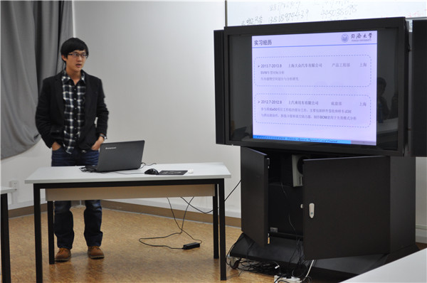 此次实习就业经验交流会邀请了高丽华、胡竞、邓永强和王禹等四位优秀的2011级硕士。这四位学长学姐分别来自于动力方向和整车方向的不同课题组。他们以自身经历给大家带来了丰富的关于实习和就业的经验。