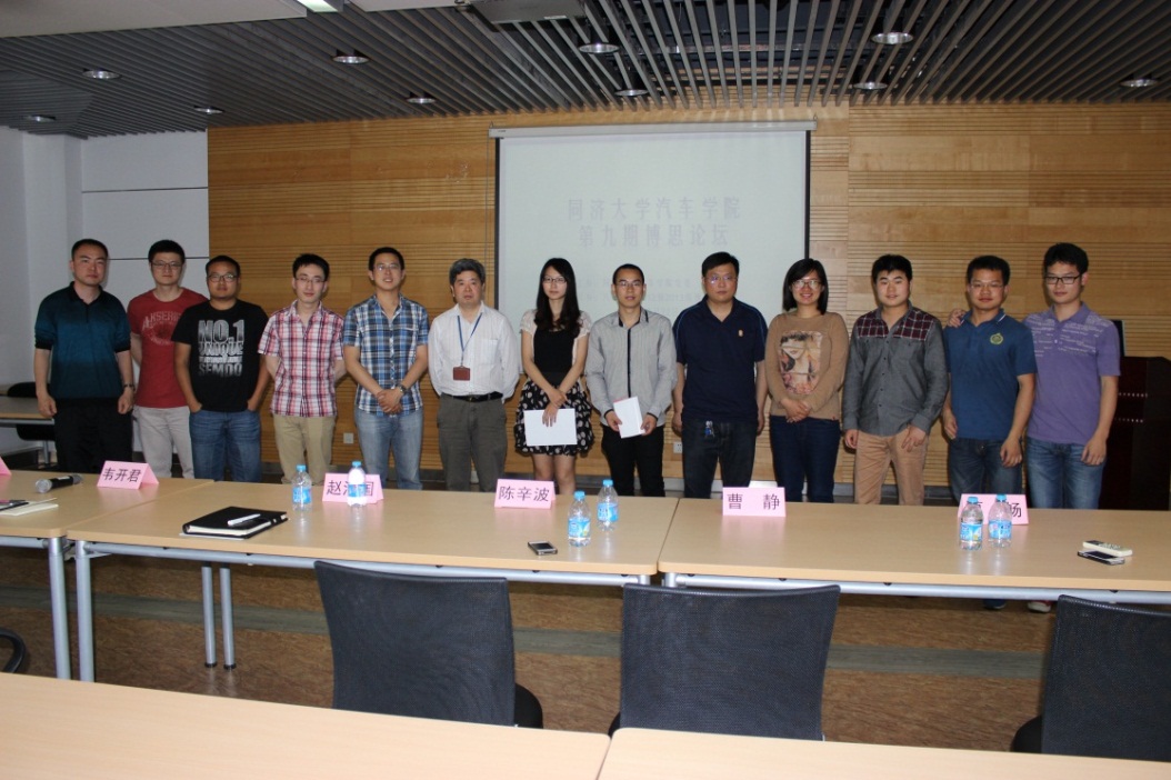 11级博士韦开君和09级博士张志强主讲,他们的演讲题目分别为“穿孔管消声器优化设计”和“清洁发动机技术”。陈辛波教授、赵治国教授作为点评博导,曹静老师,葛畅老师作为嘉宾出席了本次论坛。参加论坛的还有12级博生生和13级春季入学的博士生。
