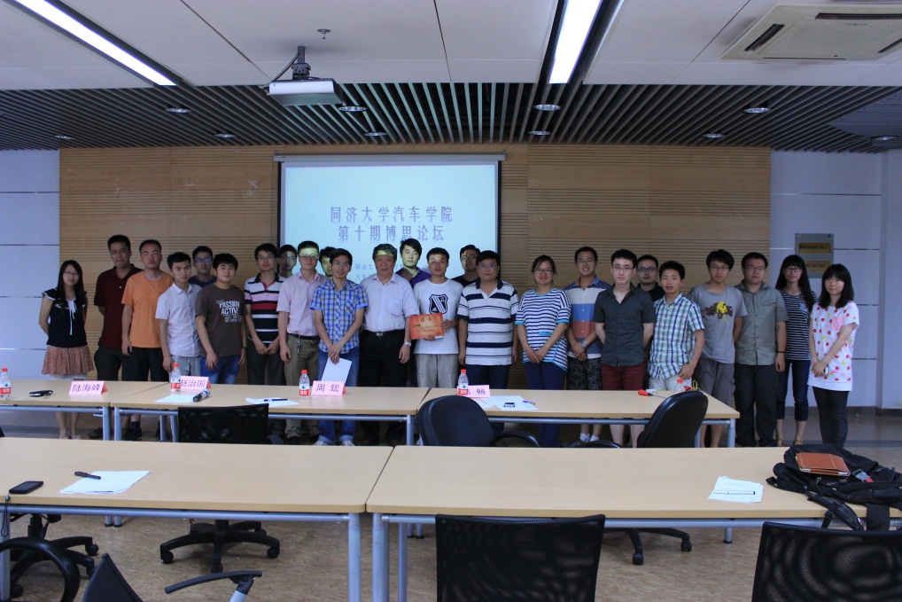 10级博士陆海峰和11级博士方剑光主讲,他们的演讲题目分别为“直喷汽油机与高能点火”和“基于代理模型的车身结构优化技术”。周鋐教授、赵治国教授作为点评博导,葛畅老师作为嘉宾出席了本次论坛。参加论坛的还有12级博生生和13级春季入学的博士生。