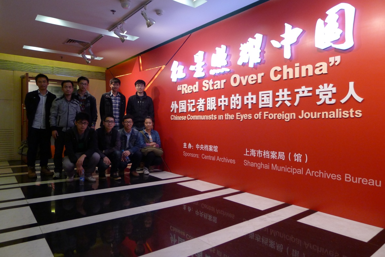 2012级专硕一支部组织参观了上海市档案馆。正值档案馆三楼的“红星照耀中国——外国记者眼中的中国共产党人”主题展对外开放。乘电梯来到三楼,首先映入眼帘的是鲜红的墙和耀眼的字:“红星照耀中国——外国记者眼中的中国共产党人”。记者是记录真相、阐述事实的神圣职业,那么隔着巨大的文化差异和语言障碍,外国记者是怎么记录我们共产党人的呢?参观的党员们,脸上都或多或少显露出了好奇与兴趣。