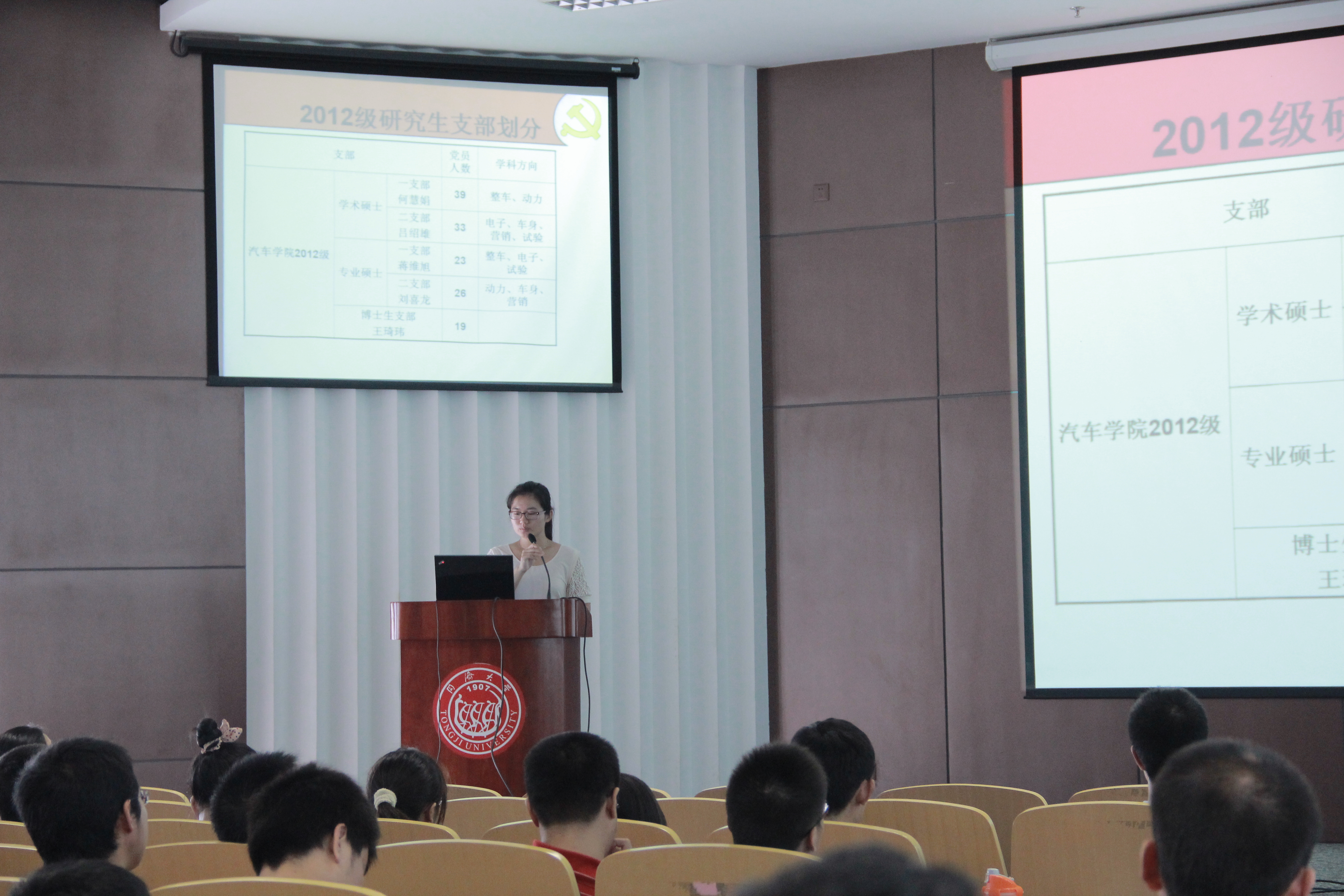 党总支副书记曹静老师、葛畅老师以及2012级全体新生党员,大会由葛畅老师主持。