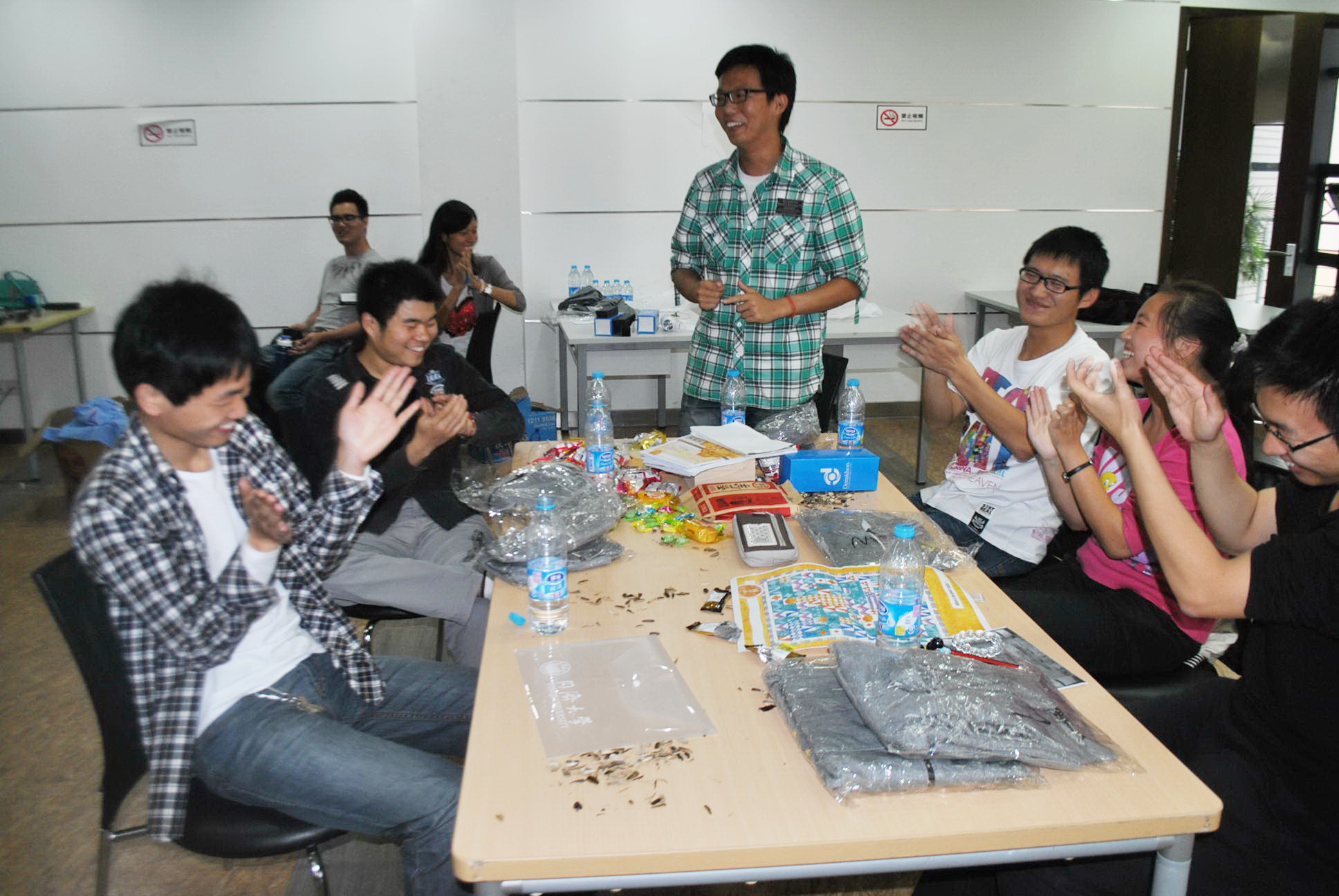 3楼的公共区域来探寻线索,各种线索包含了丰富的文史哲法等知识。此游戏旨在锻炼参与者的细致观察、积极探索和团结协作的精神以及在混乱的线索中找到有用信息、在毫无思绪的情况下如何打开思路的能力。虽然各个小组的成员很多是第一次见面,但在游戏轻松的氛围下很快融入其中,他们分工明确,有的寻找线索,有的解开谜题;同时他们又团结协作,在队友毫无思绪的情况下提供自己的灵感。最终,有三个小组在规定的时间内顺利找到并打开宝盒,得到了宝盒内的奖品。