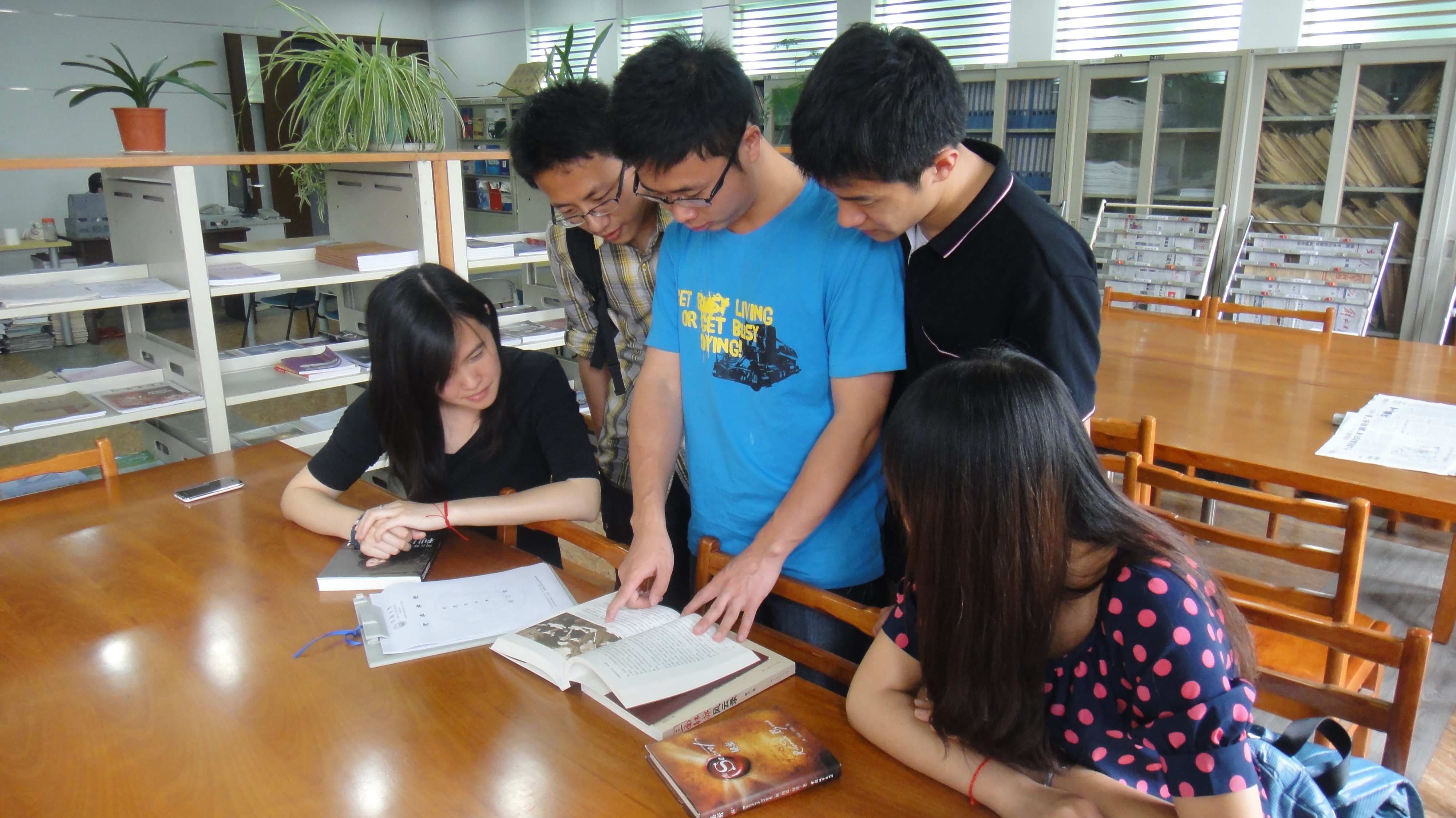 A309图书分馆进行图书阅读、小组讨论、撰写读后感和留言簿。