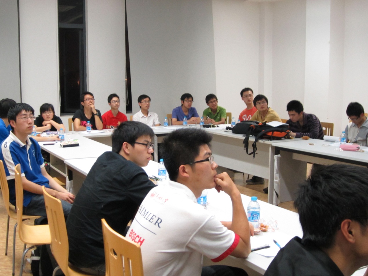 整个交流活动以茶话会的形式进行,分为创新基地各项活动介绍,10级提问以及最后的面对面交流三个环节。在主持人陈英进行开场介绍之后,创新基地主席李檀对创新基地进行了总体性的介绍。之后,EP车队代表许正昊、FASE车队代表赵宣柏、智能小车车队代表王珂分别对本车队进行了详细的介绍。最后,在场的08级党支部成员与10级的学弟学妹们面对面交流,耐心详细解答10级同学的各种问题并给予建议。