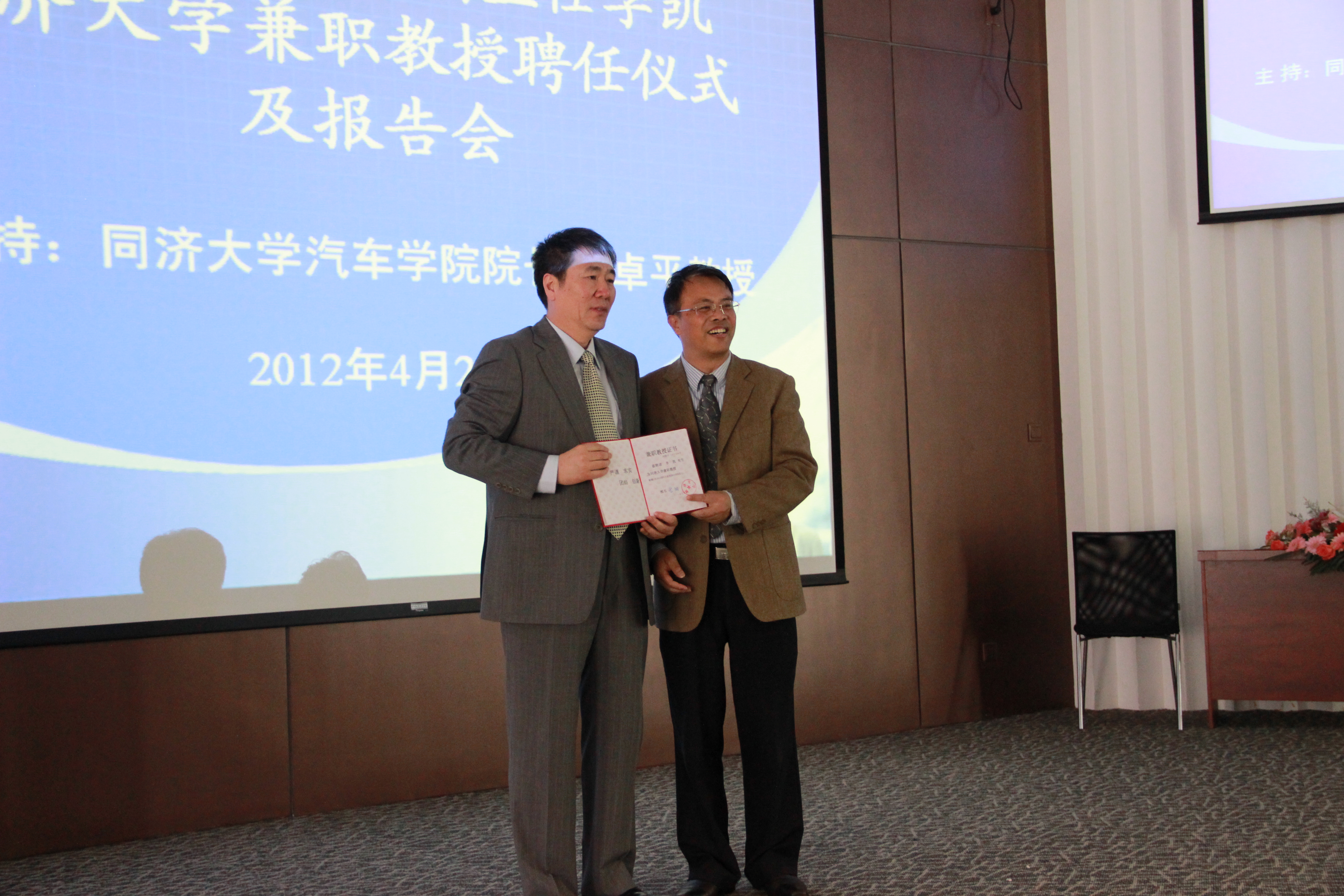 兼职教授。孙泽昌副院长介绍李凯教授的简历并感谢李凯教授来我校给同学作报告。随后,余卓平教授为李凯教授颁发聘任证书。