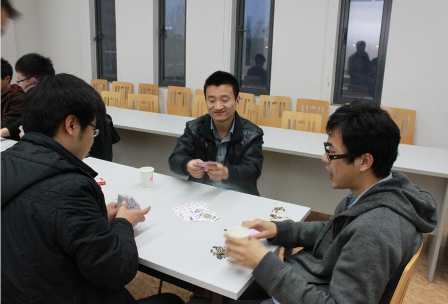 为了促进博士之间的交流与沟通,也为了丰富博士的日常生活,3月29日18时,偷拍视频 11级博士生党支部棋牌协会在偷拍视频 B206举办了“博士棋牌王”比赛。比赛引起2011级博士和2012级博士的广泛参与,参赛人数达到了26人。