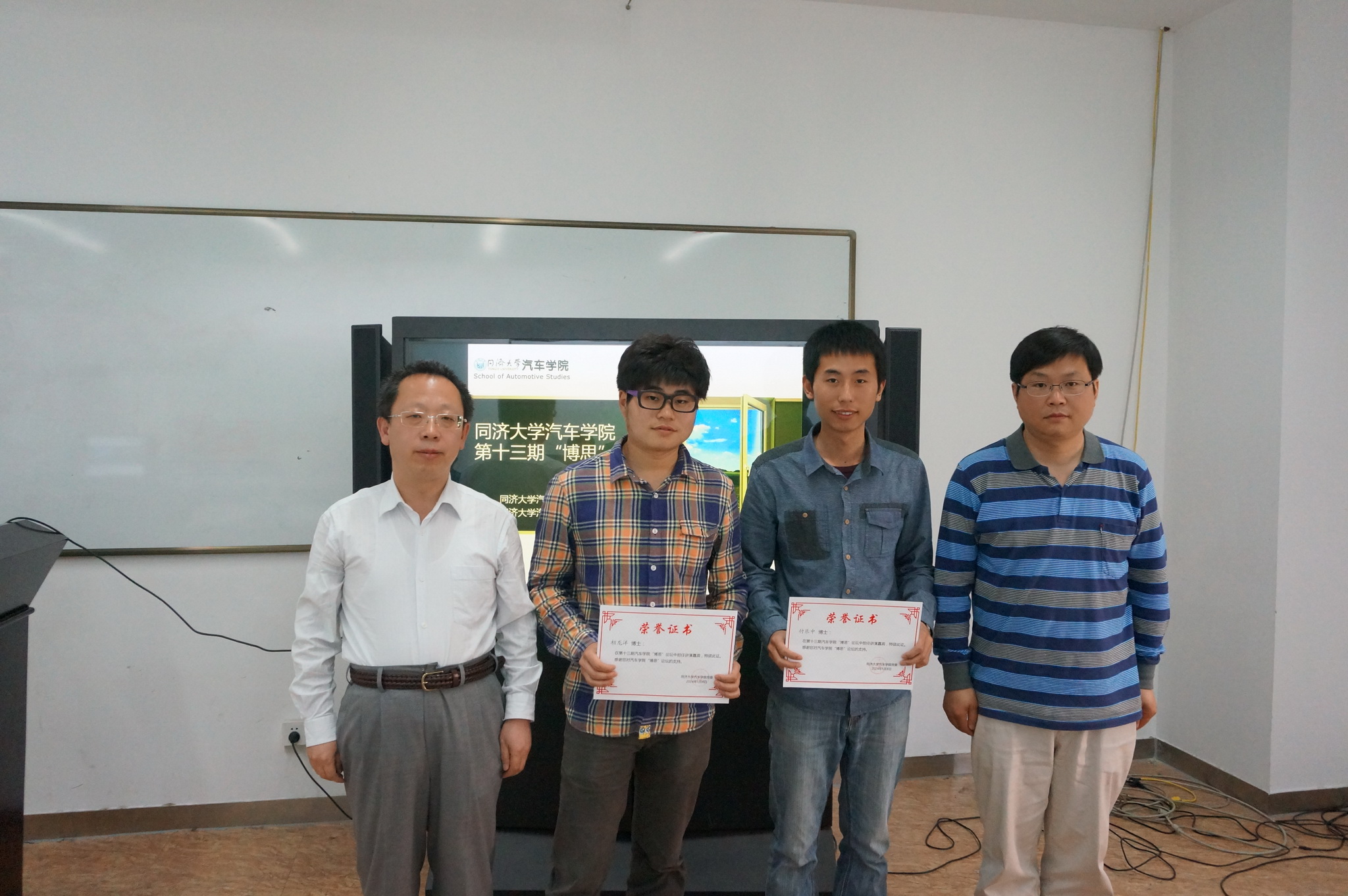 讲演结束后,由吴光强老师和赵治国老师为两位主讲博士颁发了荣誉证书并合影留念。至此,偷拍视频