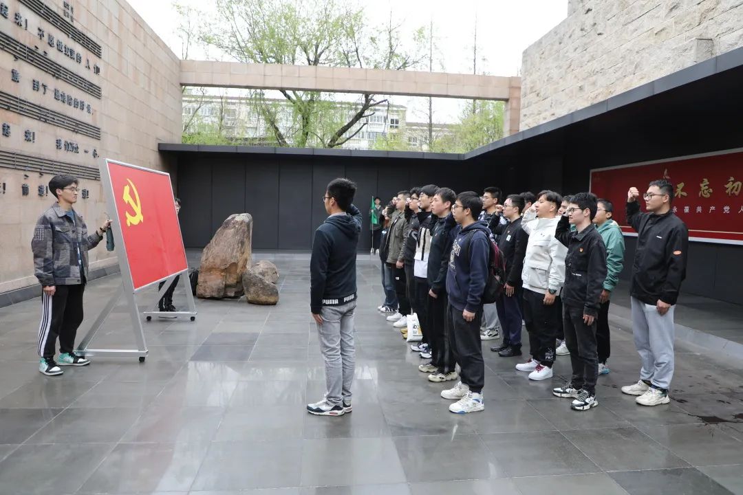 随后,全体学生来到上海淞沪抗战纪念馆,馆内以丰富的文物、史料反映了两次淞沪会战和上海十四年抗战全过程。在义勇军进行曲浮雕墙前,全体学生党员面对中国共产党党旗庄严宣誓,重温入党誓词,不忘初心、牢记使命,为入党积极分子、共青团员做出表率。