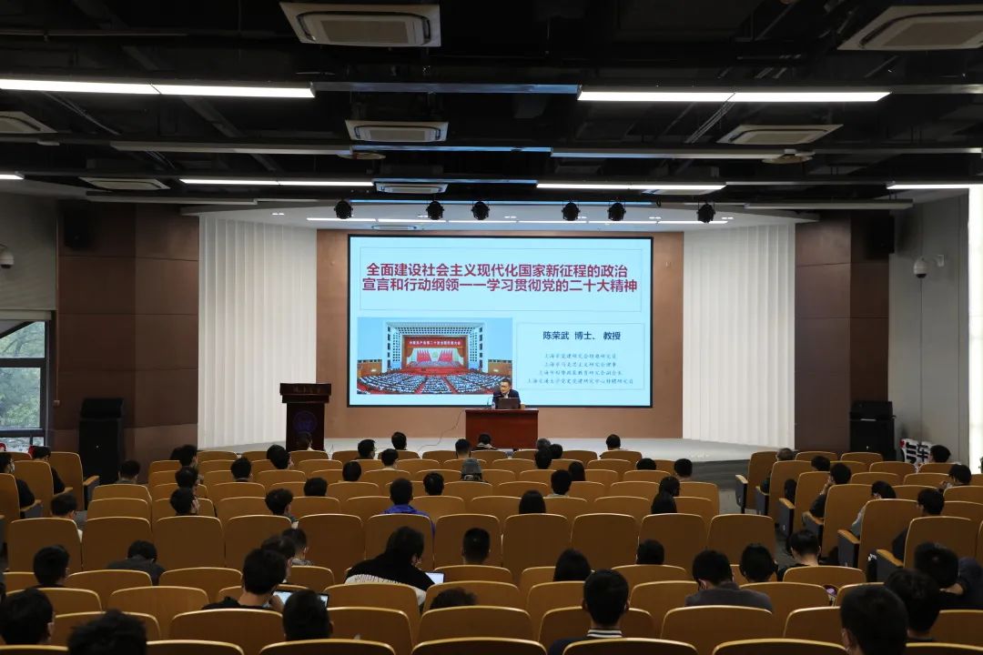 第四十九期“同车行”党委特邀报告于新能源汽车工程中心二楼报告厅举行。上海市党建研究会特邀研究员陈荣武教授为学院师生党员带来“全面建设社会主义现代化国家新征程的政治宣言和行动纲领——学习贯彻党的二十大精神”主题报告。偷拍视频