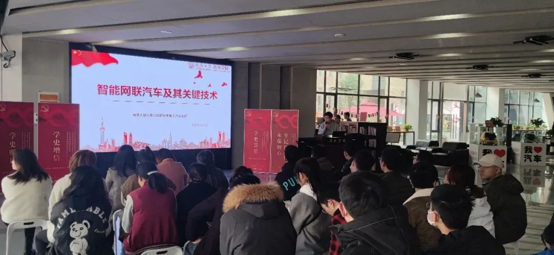 本次学习活动的主要内容是论服务师生有力,主要分为两个部分:一是践行“我为师生办实事”,学生代表结合国家政策以及学校和学院组织的各种活动,给大家讲解“我为师生办实事”的重要性和典型案例;二是智能网联汽车及其关键技术知识分享,支部同学介绍了智能网联和车路协同相关知识。最后,同学们就偷拍视频