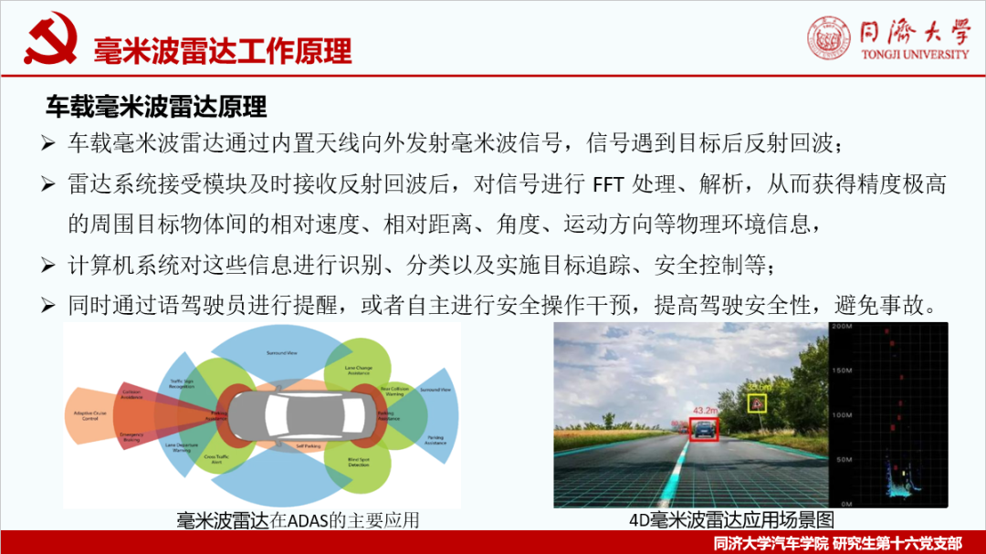 活动第二部分由研究生第十六党支部凌虎同学和大家分享了“浅谈毫米波雷达在智能汽车上的应用”的技术报告。