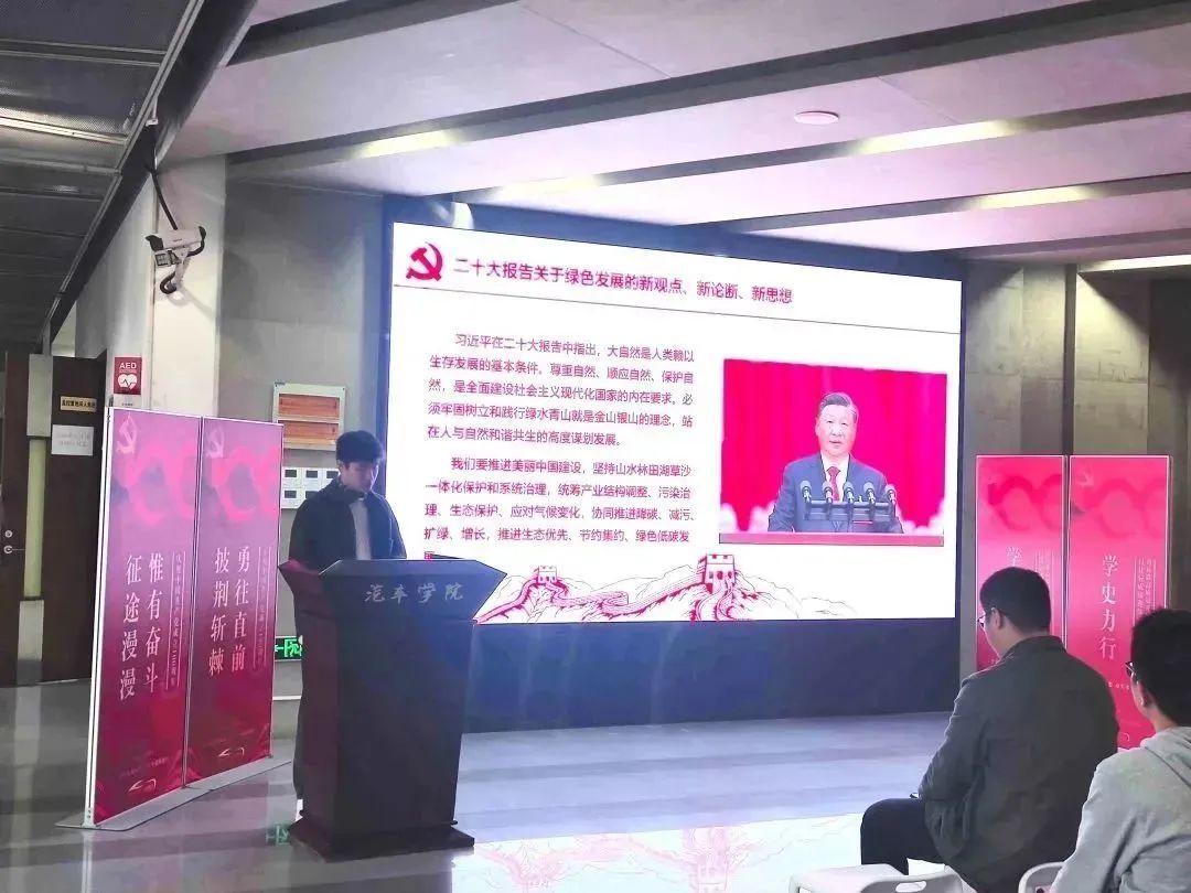 落实绿色发展的举措进行分享。鼓舞汽车学子以党的二十大报告精神为指引,致力于为贯彻绿色发展理念、实现“双碳”目标提供关键技术以及科技力量。
