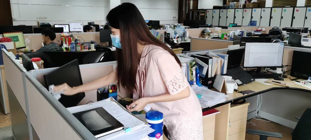 各个办公楼内都设立了消毒小分队,并准备了专业的清洁消毒工具,为师生们提供无偿服务。