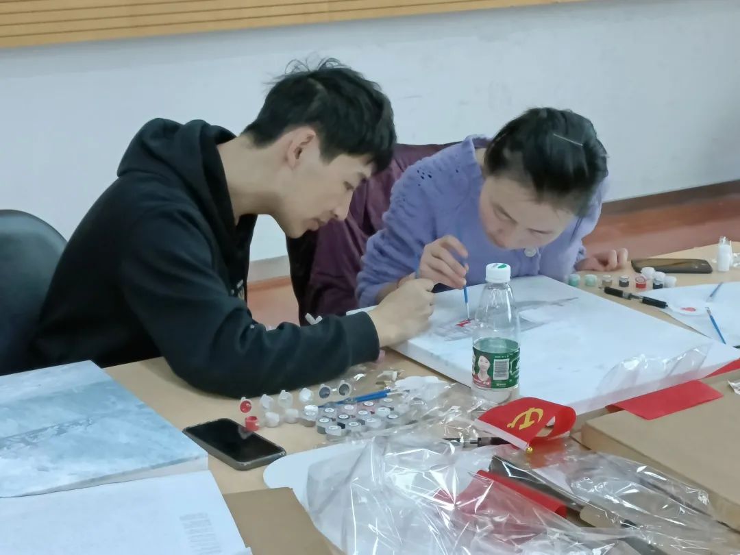 一百年来,中国共产党不忘初心、牢记使命、矢志不渝,在追求国家富强、民族振兴和人民幸福的伟大征程上,带领人民创造了一次又一次的丰功伟业,实现了中华民族从站起来到富起来,再到强起来的伟大飞跃。曾经衰败凋零的中华民族,现在是一派欣欣向荣,并以不可阻挡的步伐迈向伟大复兴。为了进一步坚定政治信仰、致敬革命先贤、传承红色基因、汲取前进力量,并表达对党的感恩之情和对祖国的美好祝愿,与会同学相互合作,制作了一件件精美的手工作品。在感悟红色精神的过程中,大家交流分享、相互了解、增进共识、共同进步。