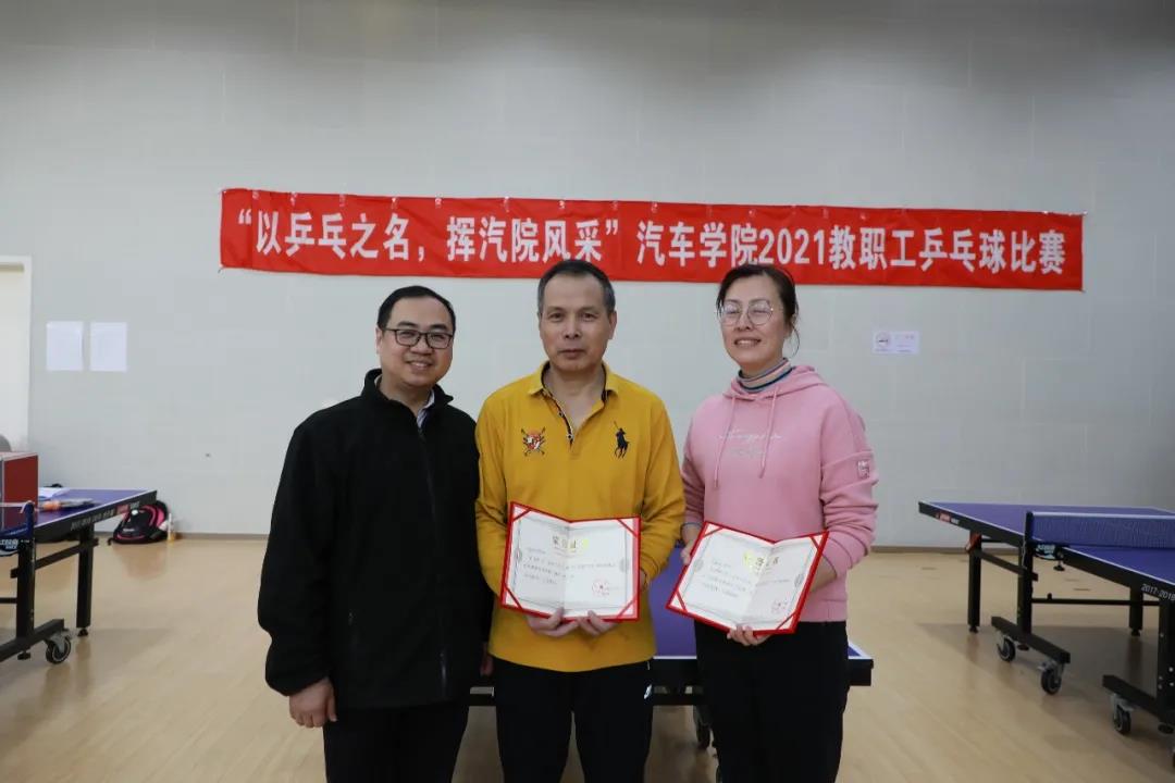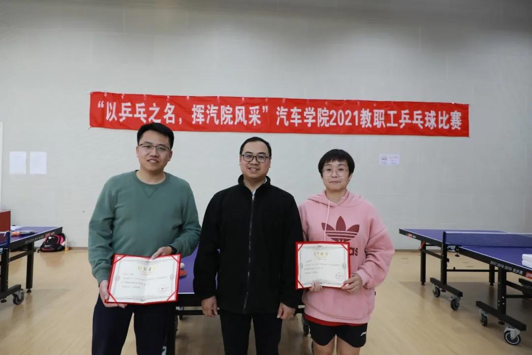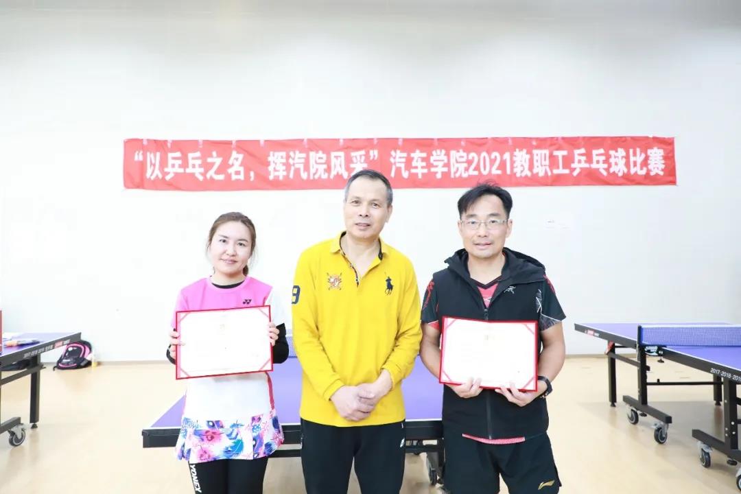 教职工乒乓球队名誉主席刘继跃老师为各位获奖选手颁发证书。